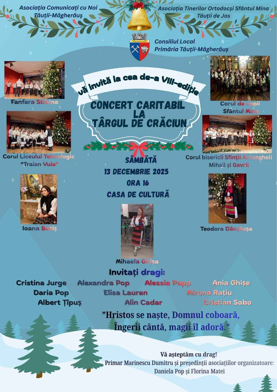 Evenimentul va avea loc sâmbătă, 13 decembrie, de la ora 16:00, la Casa de Cultură, fiind organizat de Asociația „Comunicați cu Noi” Tăuții-Măgherăuș, Asociația Tinerilor Ortodocși „Sfântul Mina” Tăuții de Jos, Primăria și Consiliul Local.
