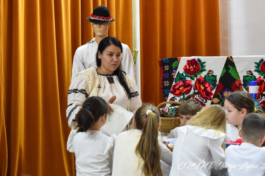 Copiii prezenți la atelierul „Șezătoare în Postul Mare” au învățat despre rochia de Rogoz, dar și despre pieptarul înfundat specific zonei Lăpușului