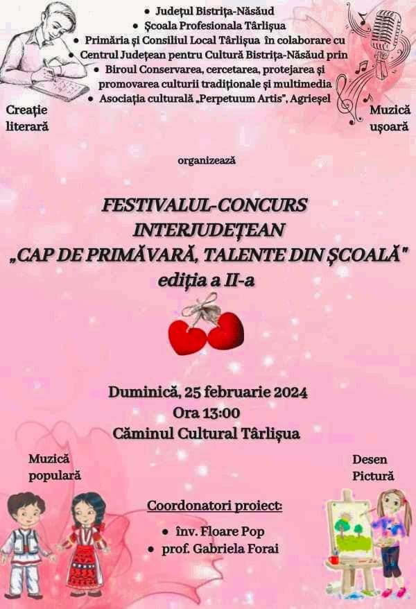 La finalul săptămânii trecute, Căminul Cultural Târlișua (Bistrița-Năsăud) a găzduit cea de-a II-a ediție a Festivalului-Concurs interjudețean „Cap de primăvară”.