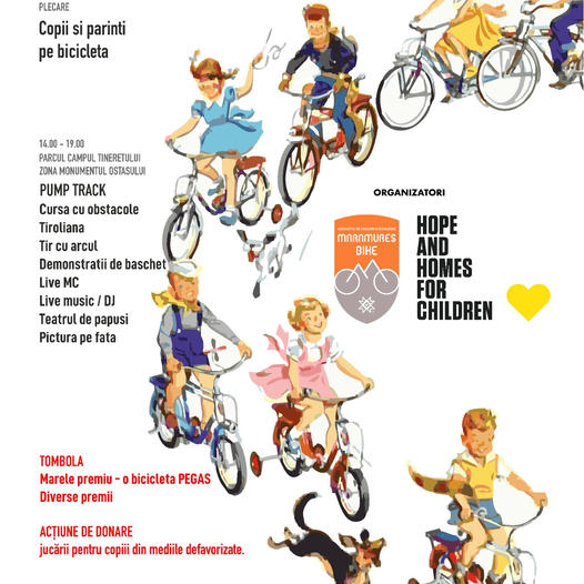Părinți, lustruiți bicicletele și pregătiți aparatele foto! Aceasta va fi o zi de neuitat pentru cei mici și o șansă minunată de a face o faptă bună!”, transmit organizatorii.