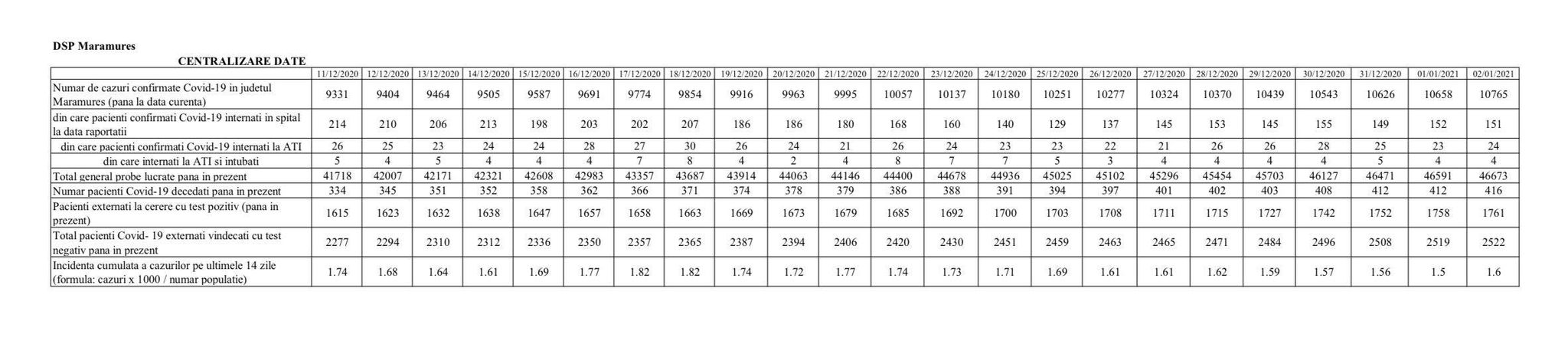 Coronavirus, 1-2 ianuarie 2021: S-a ajuns la 416 decese în Maramureș (încă 4)! În județ, în total, 10.765 cazuri de la început (52 plus 111 noi)