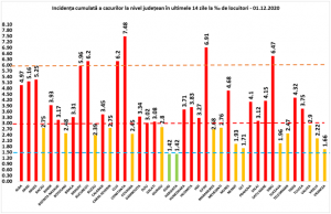 Referitor la cele 43 noi cazuri, acestea sunt din tot județul. În ceea ce privește decesele cu numerele 293-298, este vorba despre cinci persoane din categoria de vârstă 80 de ani și peste, trei bărbați și două femei, respectiv un bărbat din categoria de vârstă 70-79 de ani, cu toții cu comorbidități. Incidența de cazuri la mia de locuitori a ajuns la 2,68, deci județul se află în scenariul galben. Vom reveni cu detalii!