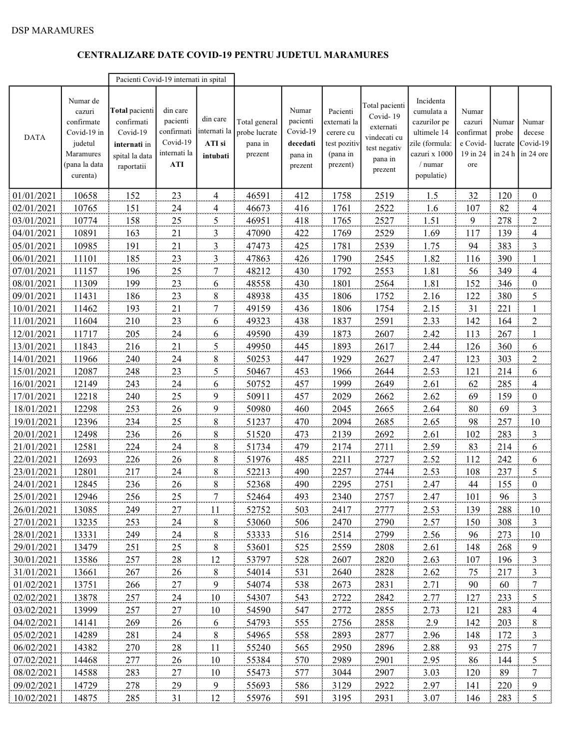 Coronavirus, 10 februarie 2021: S-a ajuns la 591 decese în Maramureș (încă 5)! În județ, în total, 14.876 cazuri de la început (212 noi)