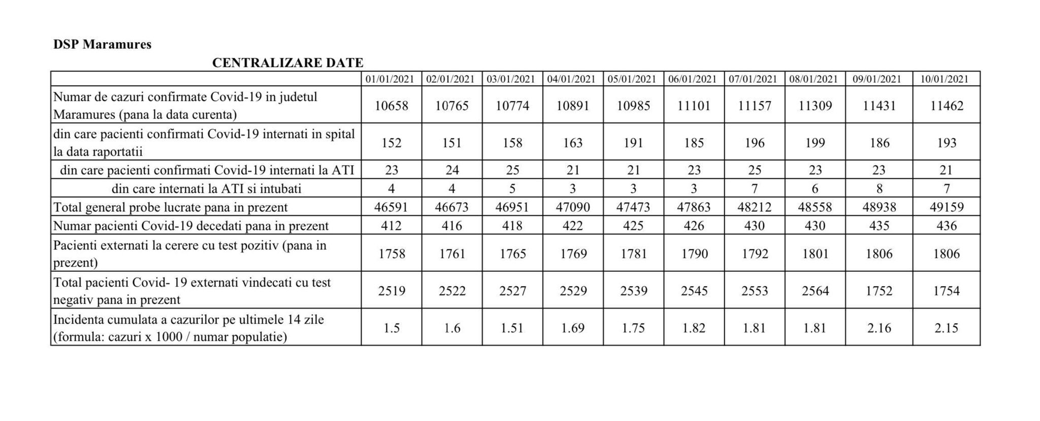 Coronavirus, 10 ianuarie 2021: S-a ajuns la 436 decese în Maramureș (încă 1)! În județ, în total, 11.460 cazuri de la început (55 noi)