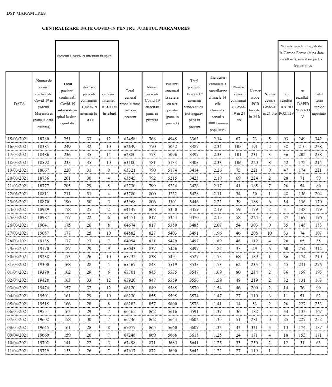 Coronavirus, 11 aprilie 2021: S-a ajuns la 872 decese în Maramureș (încă 1)! În județ, în total, 19.729 cazuri de la început (26 noi)