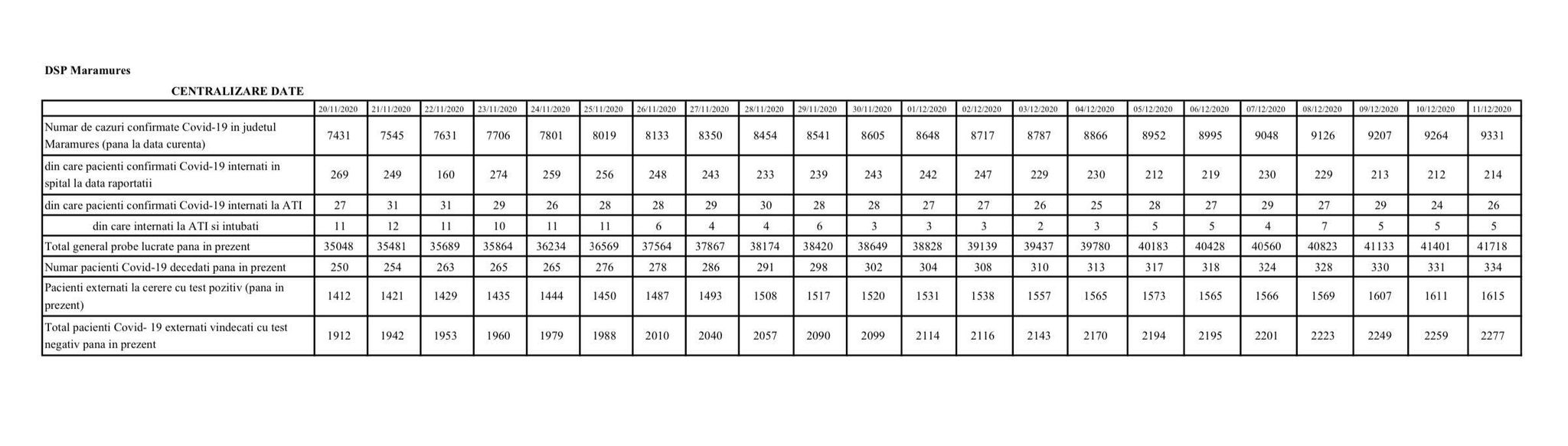 Coronavirus, 11 decembrie 2020: S-a ajuns la 334 decese în Maramureș (încă 3)! În județ, în total, 9.331 cazuri de la început (67 noi)