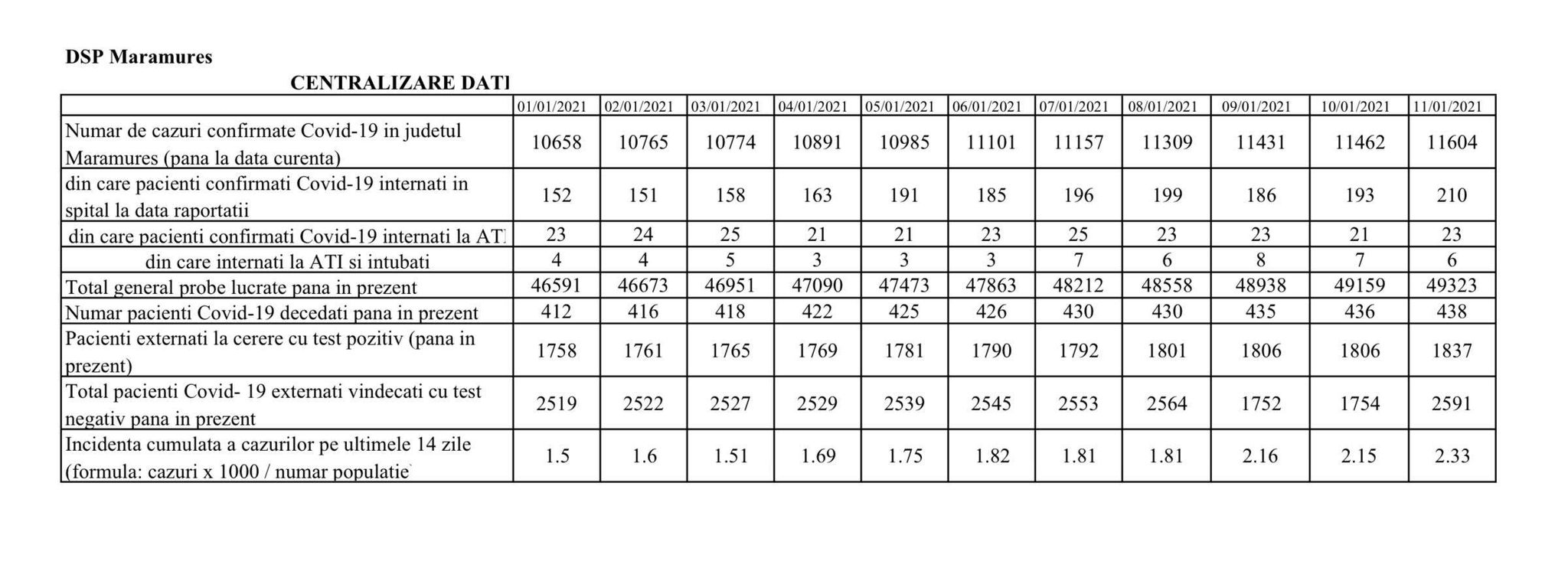 Coronavirus, 11 ianuarie 2021: S-a ajuns la 438 decese în Maramureș (încă 2)! În județ, în total, 11.604 cazuri de la început (144 noi)
