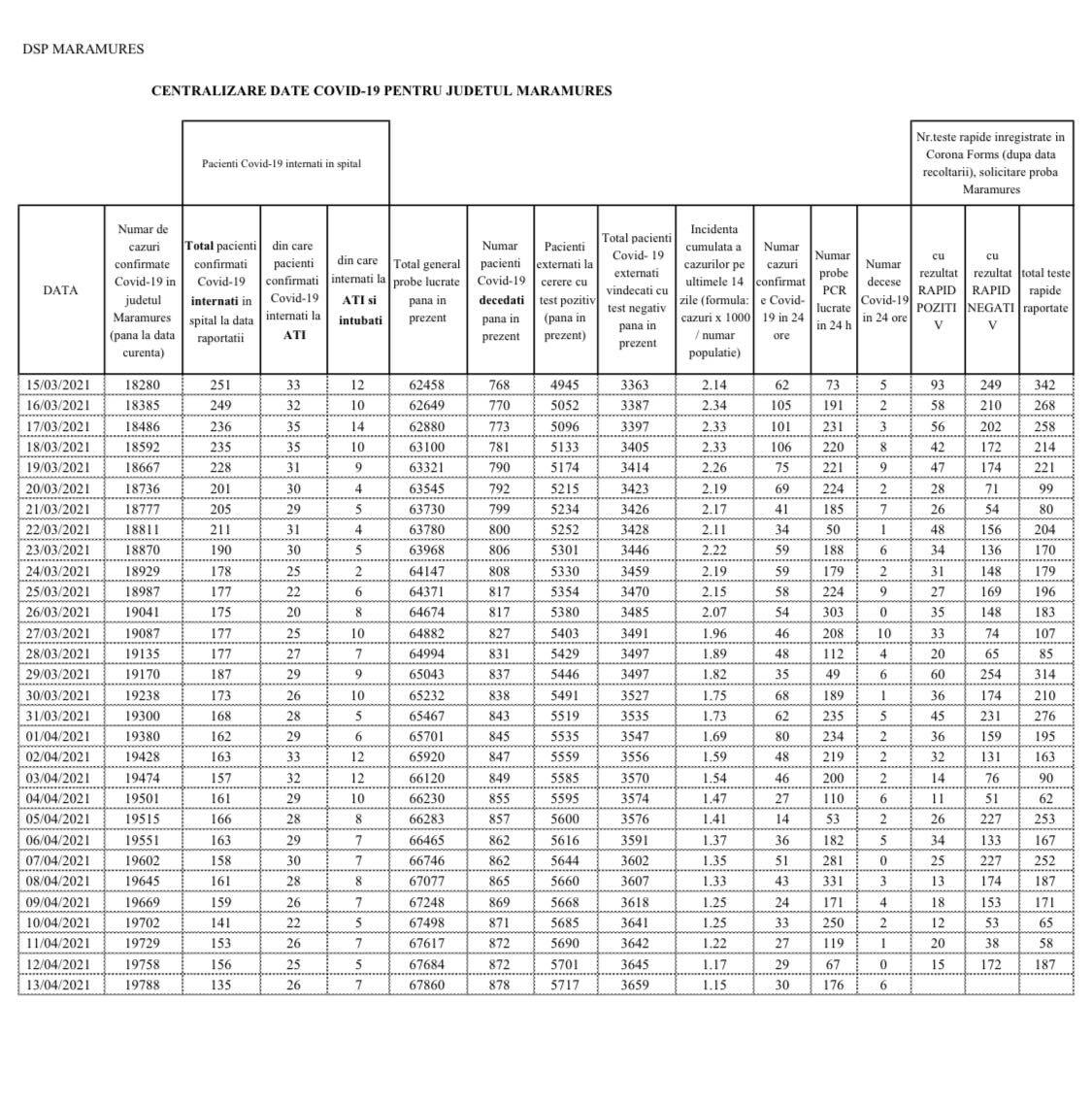 Coronavirus, 13 aprilie 2021: S-a ajuns la 878 decese în Maramureș (încă 5)! În județ, în total, 19.788 cazuri de la început (30 noi)