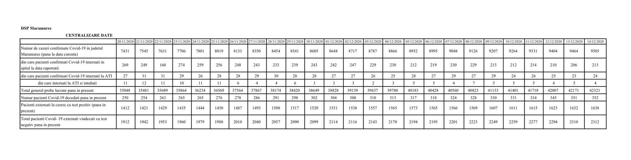 Coronavirus, 14 decembrie 2020: S-a ajuns la 345 decese în Maramureș (încă 6)! În județ, în total, 9.505 cazuri de la început (41 noi)