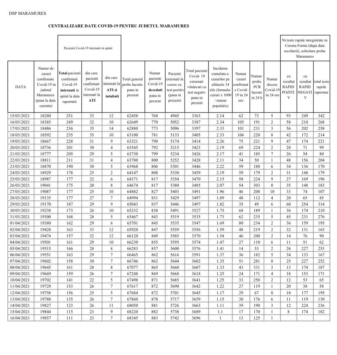 Coronavirus, 16 aprilie 2021: S-a ajuns la 883 decese în Maramureș (încă 1)! În județ, în total, 19.857 cazuri de la început (13 noi)