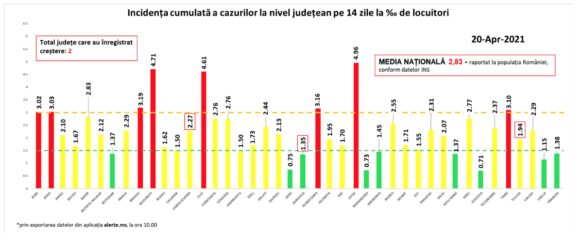 La Centrul Județean de Coordonare și Conducere a Intervenției sunt centralizate următoarele informații cu privire la situația epidemiologică:
