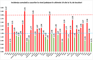 Coeficientul infectărilor cumulate la 14 zile, raportate la 1.000 de locuitori, calculat de către Direcțiile de Sănătate Publică, la nivelul Municipiului București și al județelor îl regăsiți la finalul materialului.