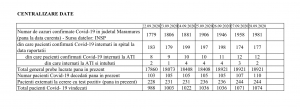 Până astăzi, 29 septembrie, pe teritoriul României, au fost confirmate 125.414 cazuri de persoane infectate cu noul coronavirus (COVID – 19). 100.636 de pacienți au fost declarați vindecați. În unitățile sanitare de profil, numărul total de persoane internate cu COVID-19 este de 7.527. Dintre acestea, 551 sunt internate la ATI. Până la această dată, la nivel național, au fost prelucrate 2.393.670 de teste. Dintre acestea 21.330 au fost efectuate în ultimele 24 de ore, 12.992 în baza definiției de caz și a protocolului medical și 8.338 la cerere. Pe teritoriul României, 10.435 de persoane confirmate cu infecție cu noul coronavirus sunt în izolare la domiciliu, iar 7.341 de persoane se află în izolare instituționalizată. De asemenea, 23.816 persoane se află în carantină la domiciliu, iar în carantină instituționalizată se află 179 de persoane. În urma testelor efectuate la nivel național, față de ultima raportare, au fost înregistrate 1.470 de cazuri noi de persoane infectate cu SARS – CoV – 2 (COVID – 19), acestea fiind cazuri care nu au mai avut anterior un test pozitiv. Distribuția pe județe a cazurilor per total și a celor noi o regăsiți în tabelul de mai jos.
