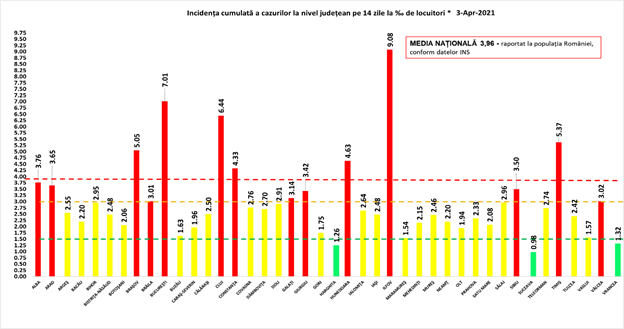Referitor la cele 45 noi cazuri, acestea sunt din tot județul. În ceea ce privește decesele cu numerele 848 și 849, este vorba despre două femei din categoriile de vârsăt 60-69 de ani și de 80 de ani și peste, ambele cu comorbidități. Incidența de cazuri la mia de locuitori a ajuns la 1,54, deci județul se află în scenariul galben. Statistica actualizată a DSP Maramureș, aferentă situației epidemiologice din județ, o regăsiți la finalul materialului. Aici ar fi de făcut o precizare: în cifrele comunicate de Centrul Județean de Coordonare și Conducere a Intervenției, conform protocolului național, apar doar pacienții internați la ATI la spitalul-suport COVID-19, adică Spitalul de Pneumoftiziologie din Baia Mare. În cifrele comunicate de DSP apare totalul de pacienți internați pe secțiile ATI din județ, adică pe lângă cei internați în spitalul-suport, și cei aflați pe secțiile-tampon ATI de la Spitalul Județean Baia Mare și Spitalul Municipal Sighetu Marmației.