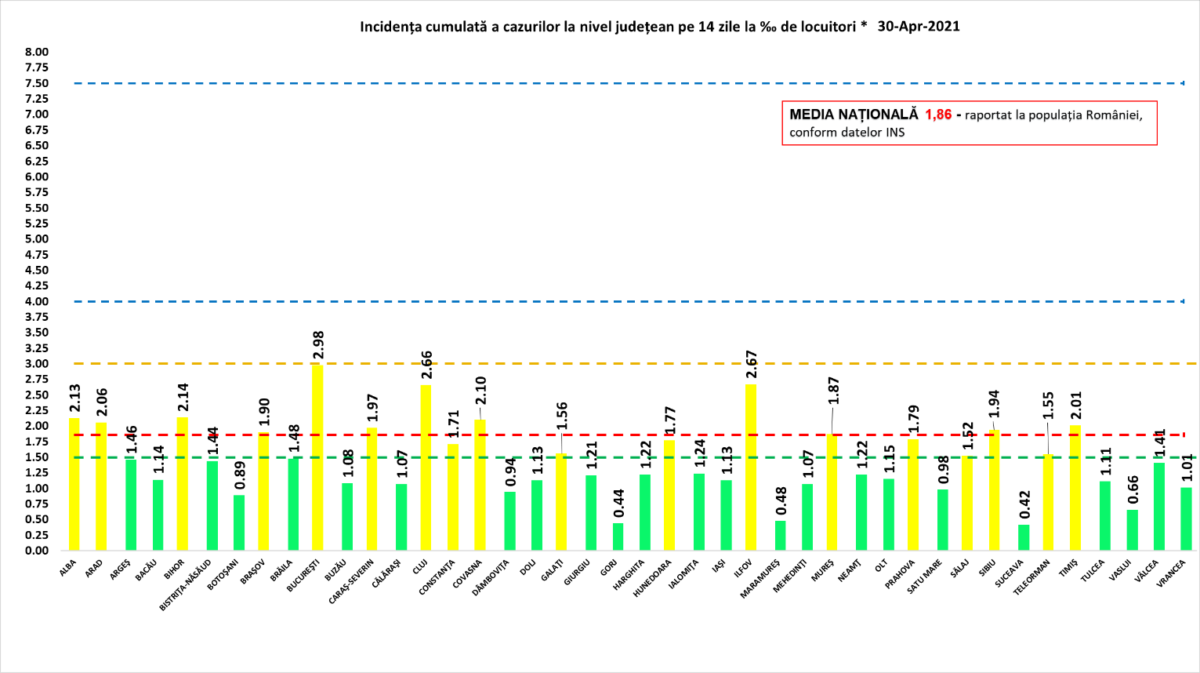 În Maramureș, în ultimele 24 de ore, structurile teritoriale ale Ministerului Afacerilor Interne (polițiști, jandarmi, polițiști de frontieră și pompieri) au executat, pe raza unităților administrativ-teritoriale, în sistem integrat, 104 misiuni. Cele 114 efective angrenate au procedat la verificarea respectării măsurilor de protecție individuală, la verificarea respectării măsurilor de către societățile comerciale și persoanele fizice autorizate, la menținerea ordinii și siguranței publice, la respectarea măsurii de carantinare/izolare de către persoanele aflate în locațiile declarate. În executarea misiunilor au fost utilizate 36 mijloace de mobilitate. La TELVERDE 0800 800 165 s-a primit o sesizare cu privire la nerespectarea măsurilor de protecție individuală care este în verificare de către instituțiile abilitate. Pe perioada executării misiunilor au fost depistate și identificate 16 persoane care nu au respectat măsurile de protecție individuală. S-au verificat cu privire la respectarea măsurilor stabilite în perioada stării de alertă peste 60 de agenți economici. Au fost aplicate, în context, sancțiuni contravenționale în valoare de peste 6000 lei. Detalii referitoare la rata de incidență poate fi vizualizată aici: https://mm.prefectura.mai.gov.ro/…/Incidenta30aprilie.pdf.