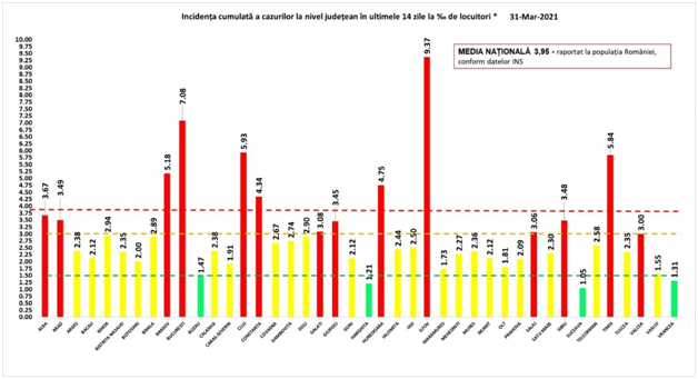 Coronavirus, 31 martie 2021: S-a ajuns la 843 decese în Maramureș (încă 5)! În județ, în total, 19.303 cazuri de la început (64 noi)