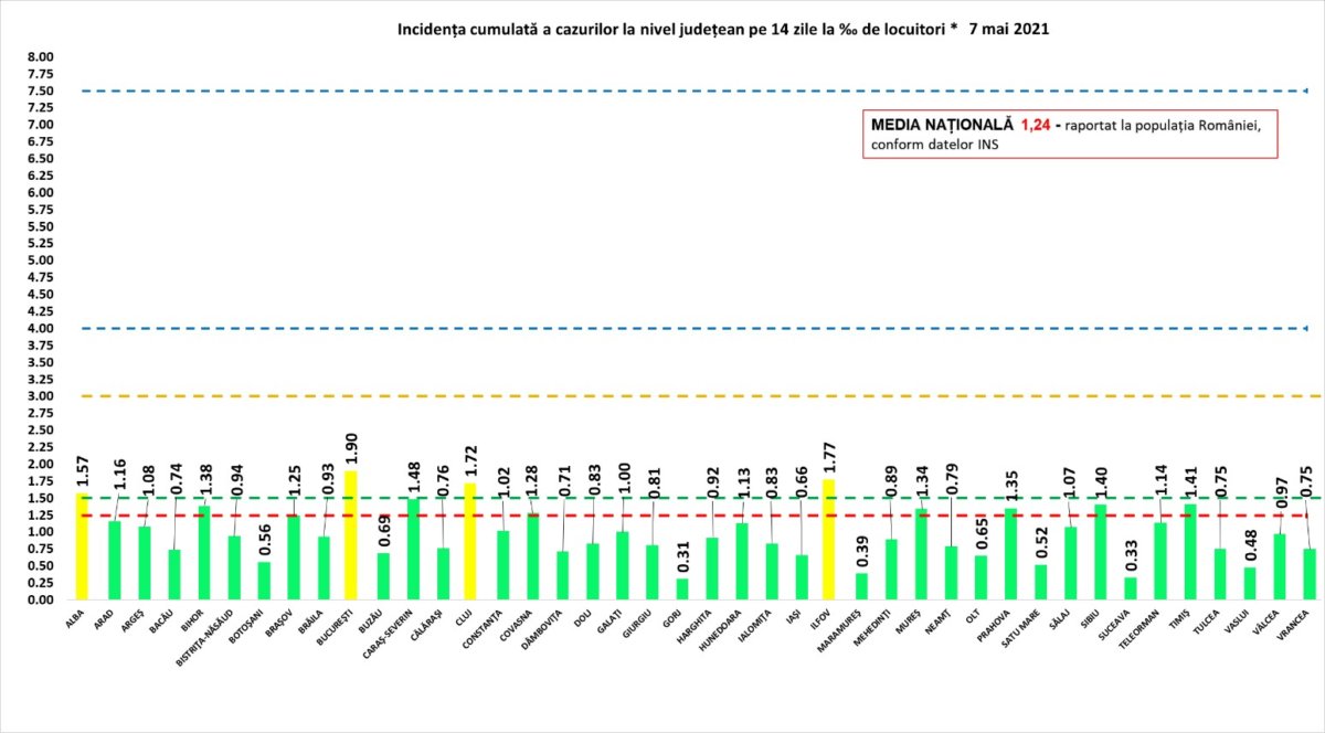 Referitor la cele 17 noi cazuri, acestea sunt din tot județul. În ceea ce privește decesul cu numărul 918, este vorba despre o femeie din categoria de vârstă 60-69 de ani, care a prezentat comorbidități. Incidența de cazuri la mia de locuitori a ajuns la 0,39, deci județul se află în scenariul verde. Statistica actualizată a DSP Maramureș, aferentă situației epidemiologice din județ, o regăsiți la finalul materialului. Aici ar fi de făcut o precizare: în cifrele comunicate de Centrul Județean de Coordonare și Conducere a Intervenției, conform protocolului național, apar doar pacienții internați la ATI la spitalul-suport COVID-19, adică Spitalul de Pneumoftiziologie din Baia Mare. În cifrele comunicate de DSP apare totalul de pacienți internați pe secțiile ATI din județ, adică pe lângă cei internați în spitalul-suport, și cei aflați pe secțiile-tampon ATI de la Spitalul Județean Baia Mare și Spitalul Municipal Sighetu Marmației.