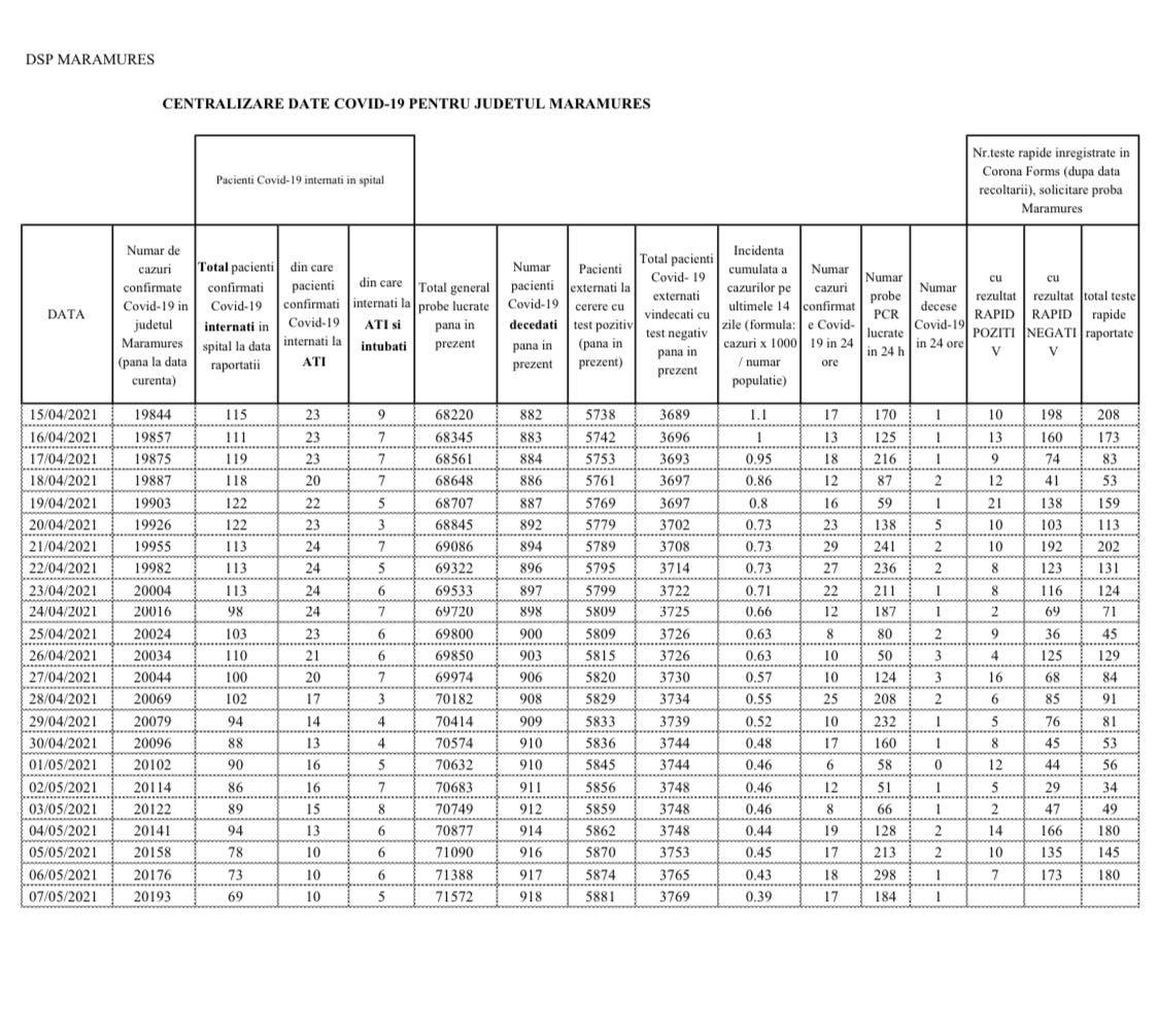 Coronavirus, 7 mai 2021: S-a ajuns la 918 decese în Maramureș (încă 1)! În județ, în total, 20.193 cazuri de la început (17 noi)