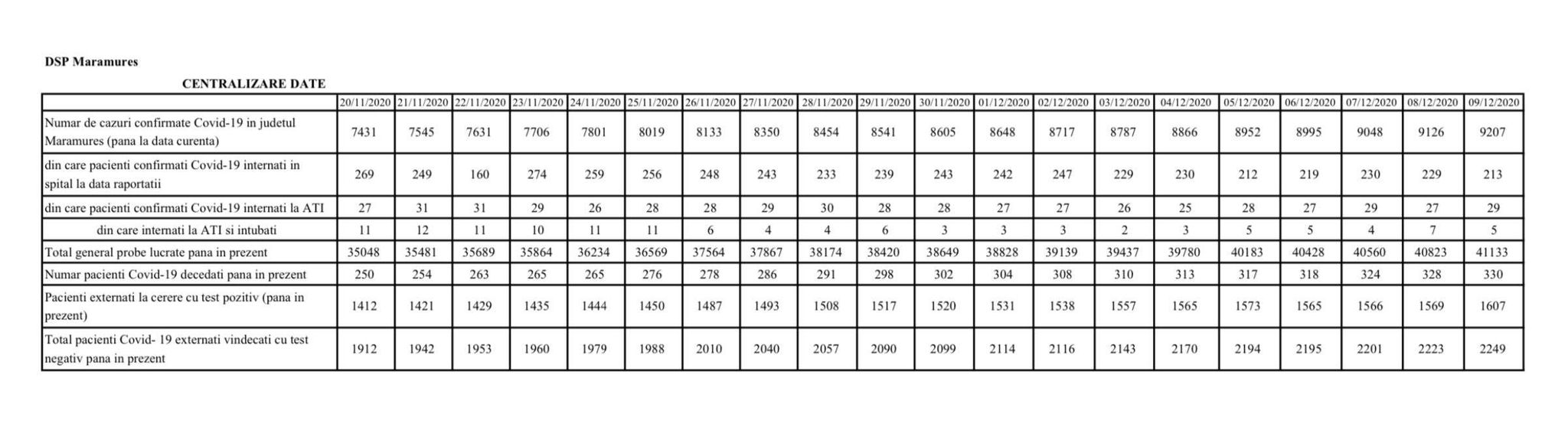 Coronavirus, 9 decembrie 2020: S-a ajuns la 330 decese în Maramureș (încă 3)! În județ, în total, 9.207 cazuri de la început (81 noi)