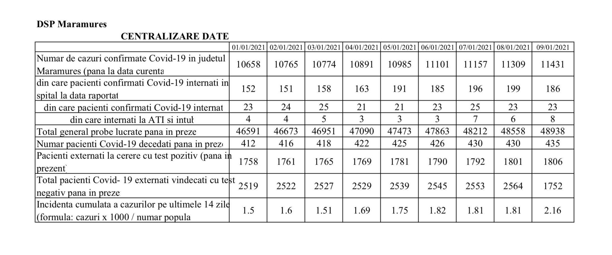 Coronavirus, 9 ianuarie 2021: S-a ajuns la 435 decese în Maramureș (încă 4)! În județ, în total, 11.405 cazuri de la început (127 noi)