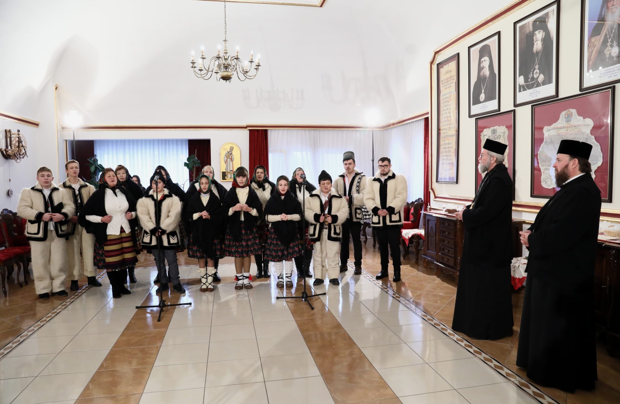 În cursul zilei de joi, 22 decembrie, celebrul cor al bisericii ortodoxe „Sfinții Arhangheli Mihail și Gavriil” din Slatina (Solotvino), Ucraina, a venit să-i colinde pe Preasfințitul Părinte Episcop Iustin și pe Preasfințitul Părinte Timotei Sătmăreanul, Arhiereu-vicar, la Reședința Episcopală din Baia Mare.