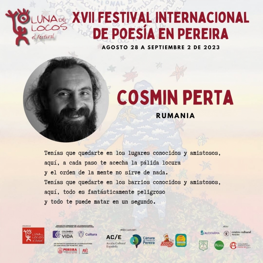 În perioada 28 august – 2 septembrie are loc cea de-a XVII-a ediție a Festivalului Internațional de Poezie din Pereira (Columbia). La acesta participă și poetul român Cosmin Perța, originar din Vișeu de Sus, cu sprijinul Institutului Cultural Român.