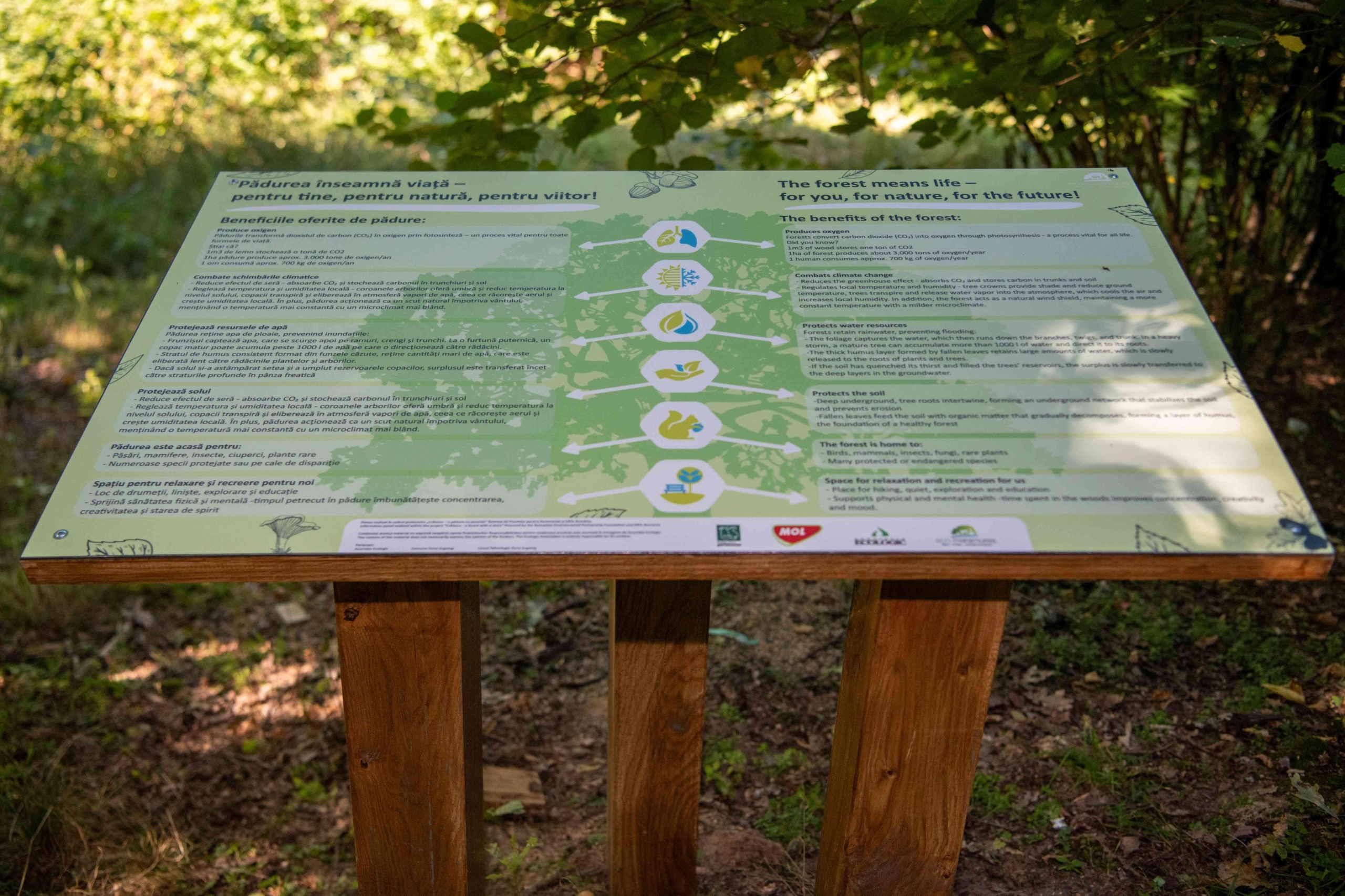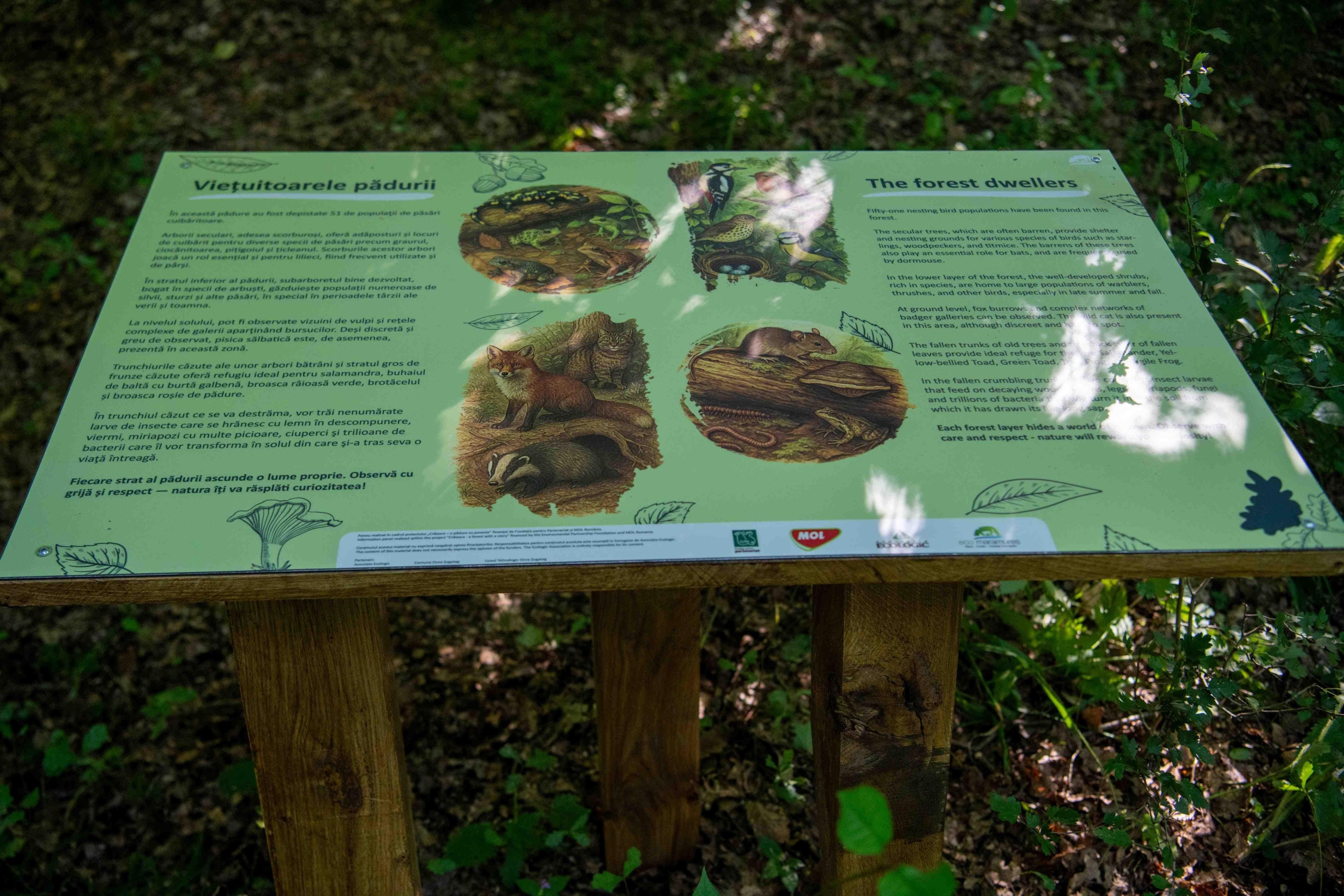 • Reabilitarea traseului tematic prin montarea panourilor informative și interactive, dedicate arborilor, arbuștilor și păsărilor din zonă;