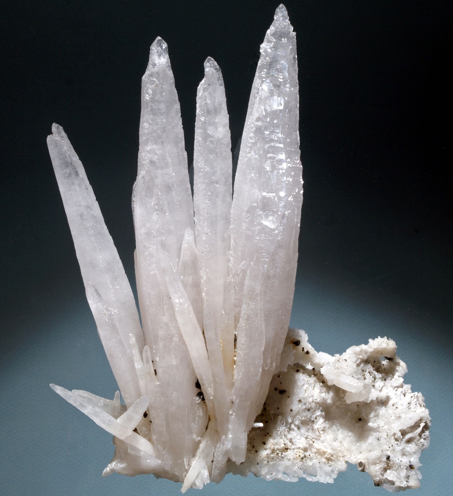 Este vorba despre Cuarţ (SiO₂), calcit (CaCO₃), calcopirită (CuFe₂S₃) – eșantion compus dintr-un agregat de cristale bine cristalizate de cuarţ, semitransparente, concrescute aproape paralel, pe o bază mică din cuarţ cu calcit şi mici cristale diseminate de calcopirită.
