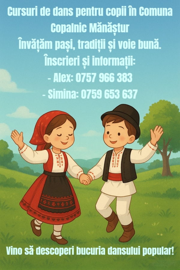 În comuna Copalnic Mănăștur, Maramureș, se organizează cursuri de dans popular pentru copiii dornici să învețe și să se dezvolte într-un mediu prietenos, descoperind frumusețea tradițiilor și folclorului prin mișcare și voie bună.