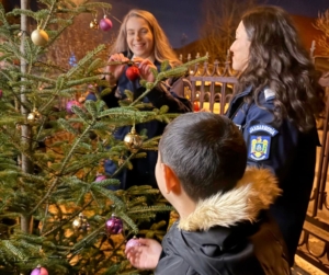 Jandarmii au mers încărcați cu daruri și cu un pom de Crăciun la o casă familială din Baia Mare. Au dus și cele trebuincioase bradului, pe care l-au împodobit împreună cu copiii, ca în familie.
