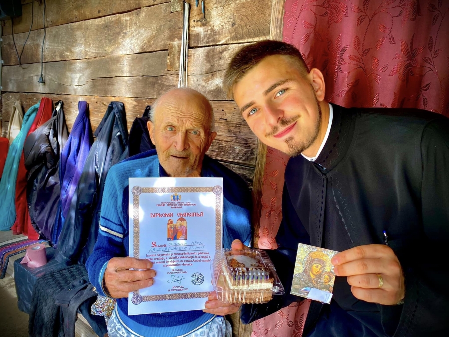 Părintele paroh Ioan-Florin Vlad și cântărețul Luca Hotima au trecut pe la fiecare și le-au oferit mici daruri. Reamintim că 2023 a fost proclamat, în Patriarhia Română, drept „Anul omagial al pastorației persoanelor vârstnice”.
