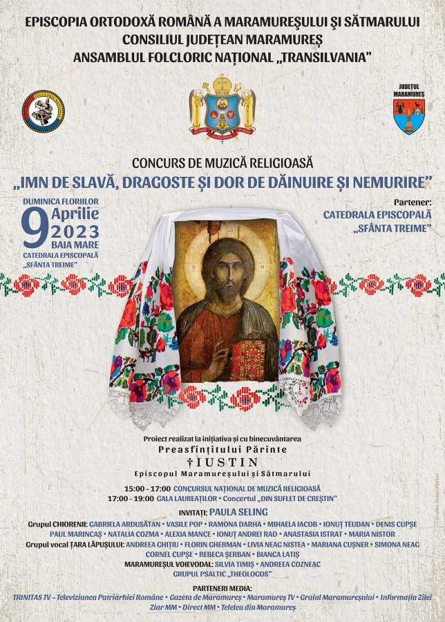 „Anul 2023 a fost declarat în Patriarhia Română Anul Comemorativ al imnografilor și cântăreților bisericești. În acest context, Episcopia Ortodoxă Română a Maramureșului și Sătmarului alături de instituțiile partenere organizează Concursul Național de Muzică Psaltică și Religioasă destinat tinerilor interpreți cu vârsta cuprinsă între 16 și 35 de ani care prezintă calități vocale și interpretative deosebite care iubesc muzica bisericească și valorile ancestrale ale neamului românesc.