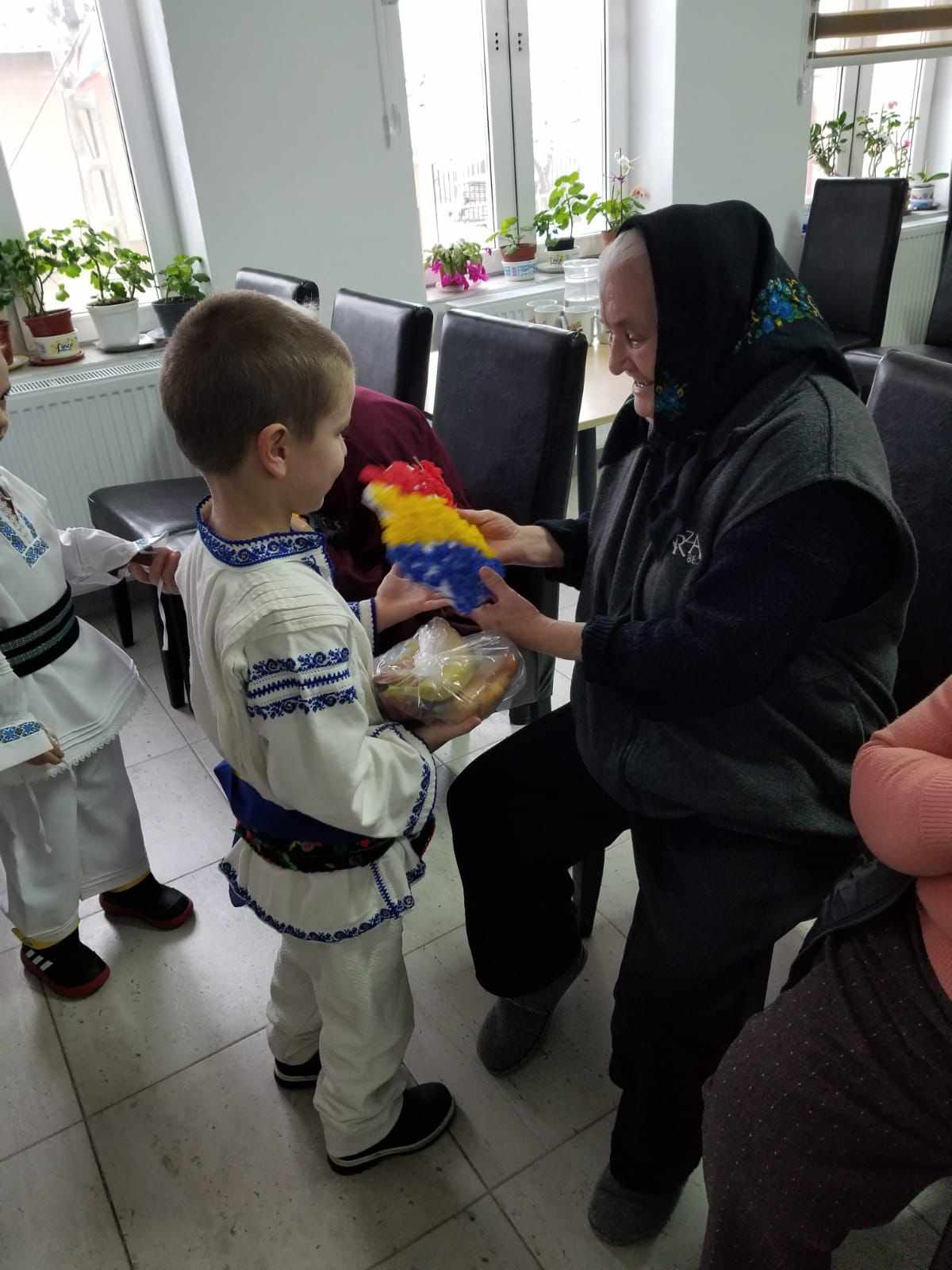 De asemenea, micuții preșcolari le-au dăruit fructe, dulciuri, semne patriotice realizate de ei, le-au cântat cântece specifice sărbătorii și au colindat. Acțiunea din 29 noiembrie, face parte din cadrul campaniei naționale SNAC – Strategia Națională de Acțiune Comunitară.