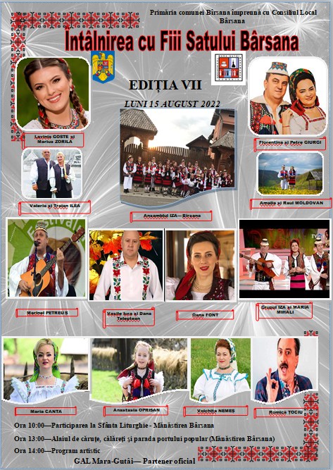 Va fi mare sărbătoare în inima Maramureșului, în Bârsana. În 14-15 august va avea loc „Întâlnirea cu fiii satului”, un eveniment cu o tradiție de jumătate de secol, dar care în 2022 are ediția nr 7 de la revigorarea sa.