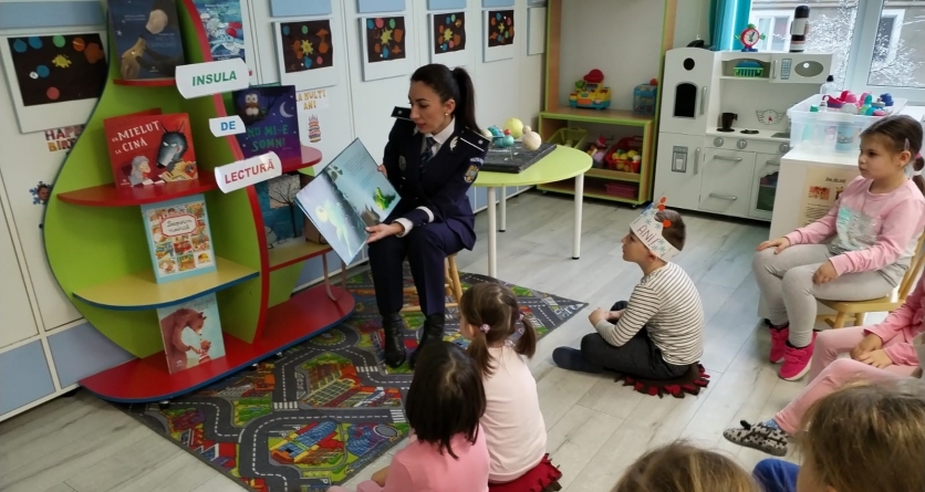 De Ziua internațională a cititului împreună: Polițiștii au citit povești cu tâlc elevilor și preșcolarilor din Baia Mare