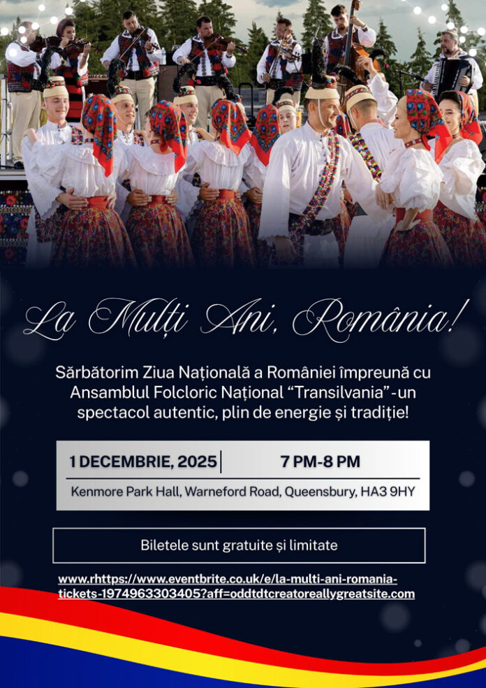 Pe 1 Decembrie, românii din Londra sunt invitați să trăiască bucuria și emoția Zilei Naționale într-o atmosferă de sărbătoare autentic românească.