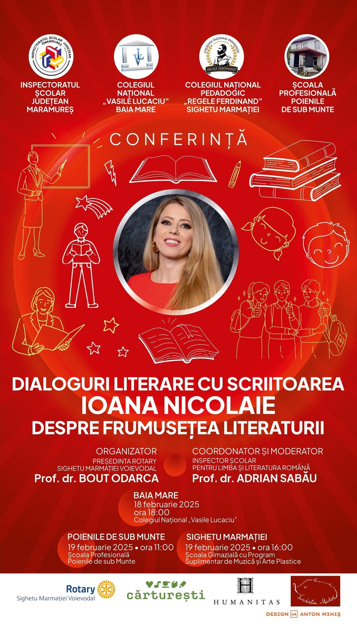 „Elevii și profesorii maramureșeni vor trăi bucuria întâlnirilor cu poeta și prozatoarea Ioana Nicolaie. Îi sunt recunoscător colegei mele, prof. dr. Bout Odarca, pentru că și-a dedicat mandatul de președintă a Rotary Sighetu Marmației Voievodal unui demers cuprins, definit și elaborat în cadrul proiectului „Comunitate educată”. Mulțumim, stimată doamnă Ioana Nicolaie!”, transmite inspector prof. Adrian Sabău.
