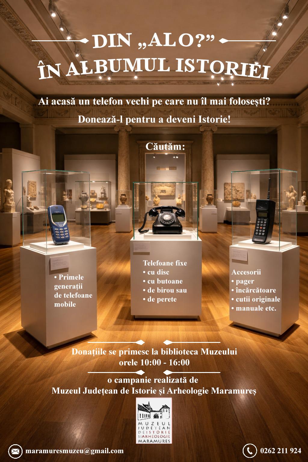 Muzeul Județean de Istorie și Arheologie Maramureș lansează un apel către public pentru realizarea unei colecții speciale dedicate istoriei comunicării. Reprezentanții instituției îi încurajează pe maramureșeni să doneze telefoane vechi – de la cele cu disc și modele cu butoane, până la primele generații de telefoane mobile, supranumite „cărămizi”.