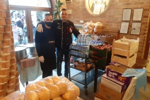 Și de această dată, chef Vasile Hotca a gătit aproximativ 180 porții de mâncare. Acestea au fost introduse în caserole și oferite beneficiarilor de servicii de asistență socială ai Asociației Filantropice “Sfântul Iosif Mărturisitorul” care funcționează pe lângă Bisericuța din Lemn. Asistații social au fost încântați de sprijinul primit în aceste vremuri grele și au mulțumit binefăcătorilor lor.