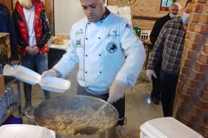 Duminica aceasta, masa caldă a fost gătită de chef Vasile Hotca, cunoscut pentru acțiunile sociale pe care le inițiază sau participă. Alături de el au venit soții Adi și Oana Birta, care au inițiat campania “Din suflet pentru suflete”, dar și doamna Maria Mezei. Evident, gazde au fost părintele Vasile Fodoruț, preotul paroh al Parohiei Parohia Ortodoxă „Sfântul Iosif Mărturisitorul” și toți slujitorii din cadrul Bisericuței de Lemn, care oferă sprijin sufletesc și social celor mai puțin norocoși.