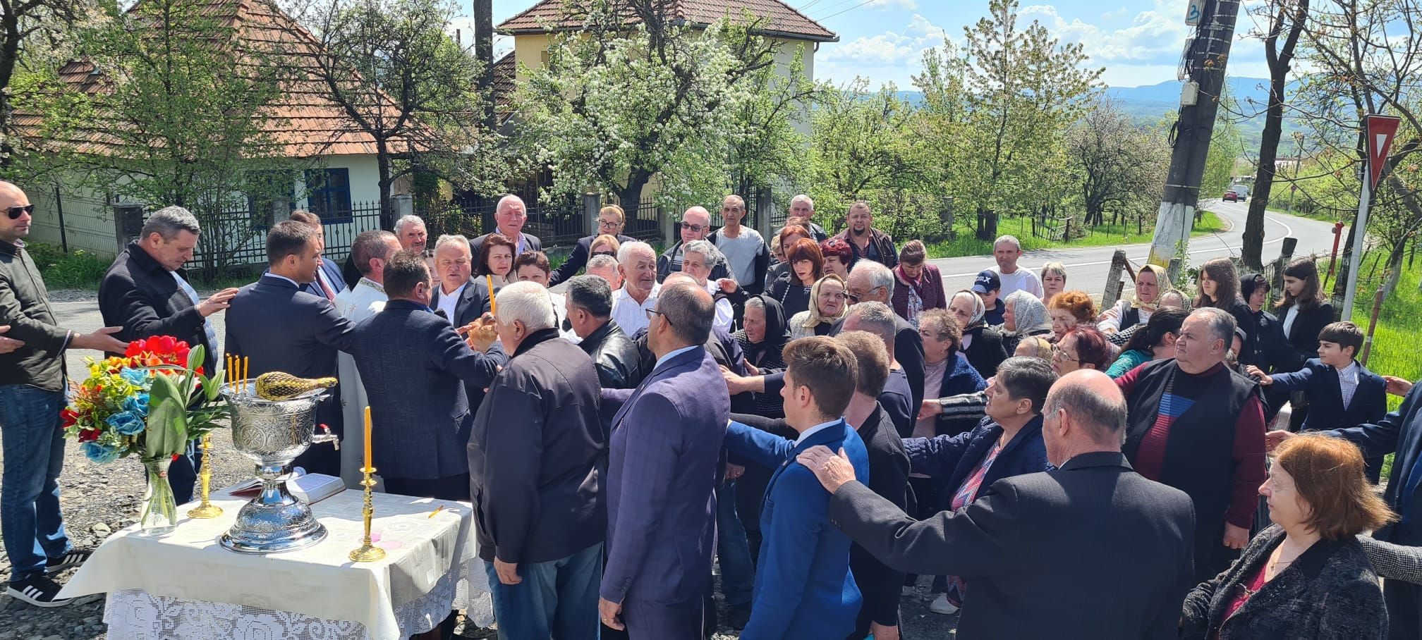„În contextul în care Patriarhia Română a consacrat anul 2022 ca „An omagial al rugăciunii în viața Bisericii și a creștinului”, în strânsă colaborare cu familiile Mihalca Gheorghe și Claudia, respectiv Filip Nicolae și Florica, am binecuvântat inițiativa domniilor lor de a înnoi una dintre troițele importante ale parohiei noastre: cea situată aproape de vârful Huciului, pe drumul principal care vine dinspre Dumbrăvița și Țara Lăpușului. Nici vechea sfântă Cruce nu va fi uitată, ea urmând a fi restaurată în viitorul imediat și amplasată într-o nouă locație de pe raza parohiei Groși. Astfel, reafirmăm și conștientizăm importanța fundamentală a Crucii în cultul public, dar și în cel particular creștin. După săptămâni de muncă, iată că azi a fost ziua sfințirii noii Troițe, în prezența oficialităților locale, a câtorva zeci de localnici și a altor invitați, zi de aleasă bucurie și împlinire duhovnicească. Felicităm din suflet, pentru monumentala Cruce, pe cele două familii ostenitoare precum și pe toți cei care, într-un fel sau altul, au contribuit la reușita edificiului. Hristos a înviat! Adevărat a înviat!”, arată părintele paroh Claudiu Pop.