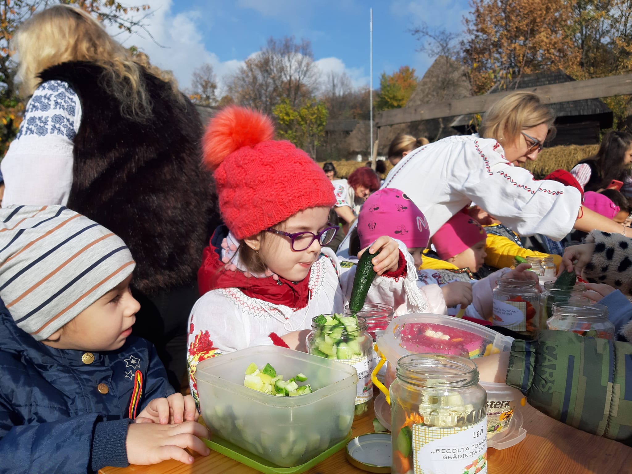 Harnicii preșcolari au pus murături pentru iarnă în borcane care mai de care mai colorate și asortate, informează cei de la Muzeu.