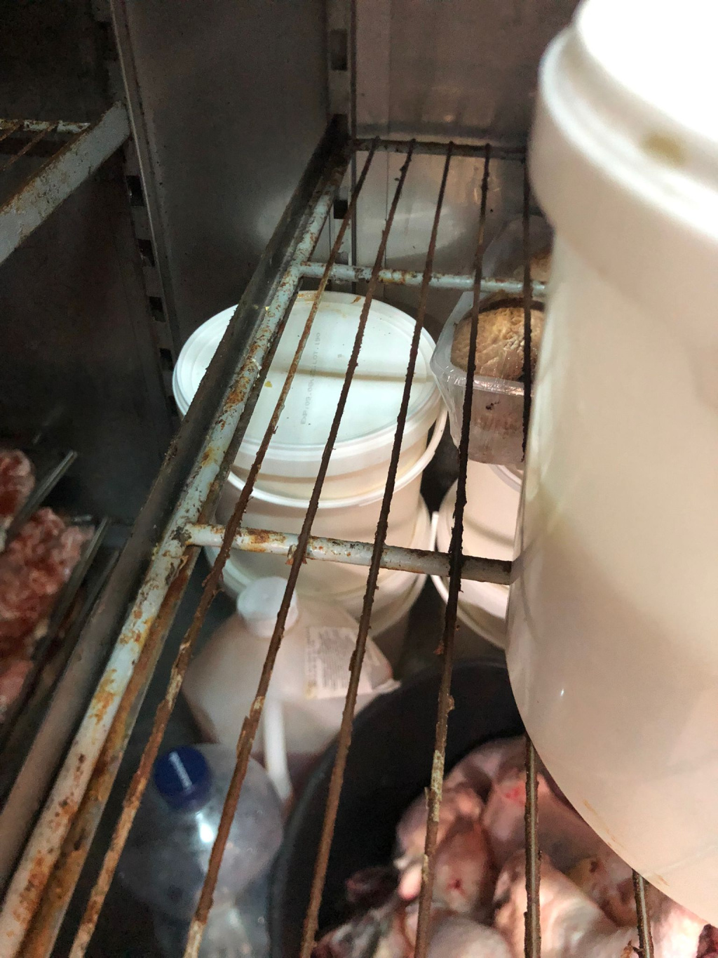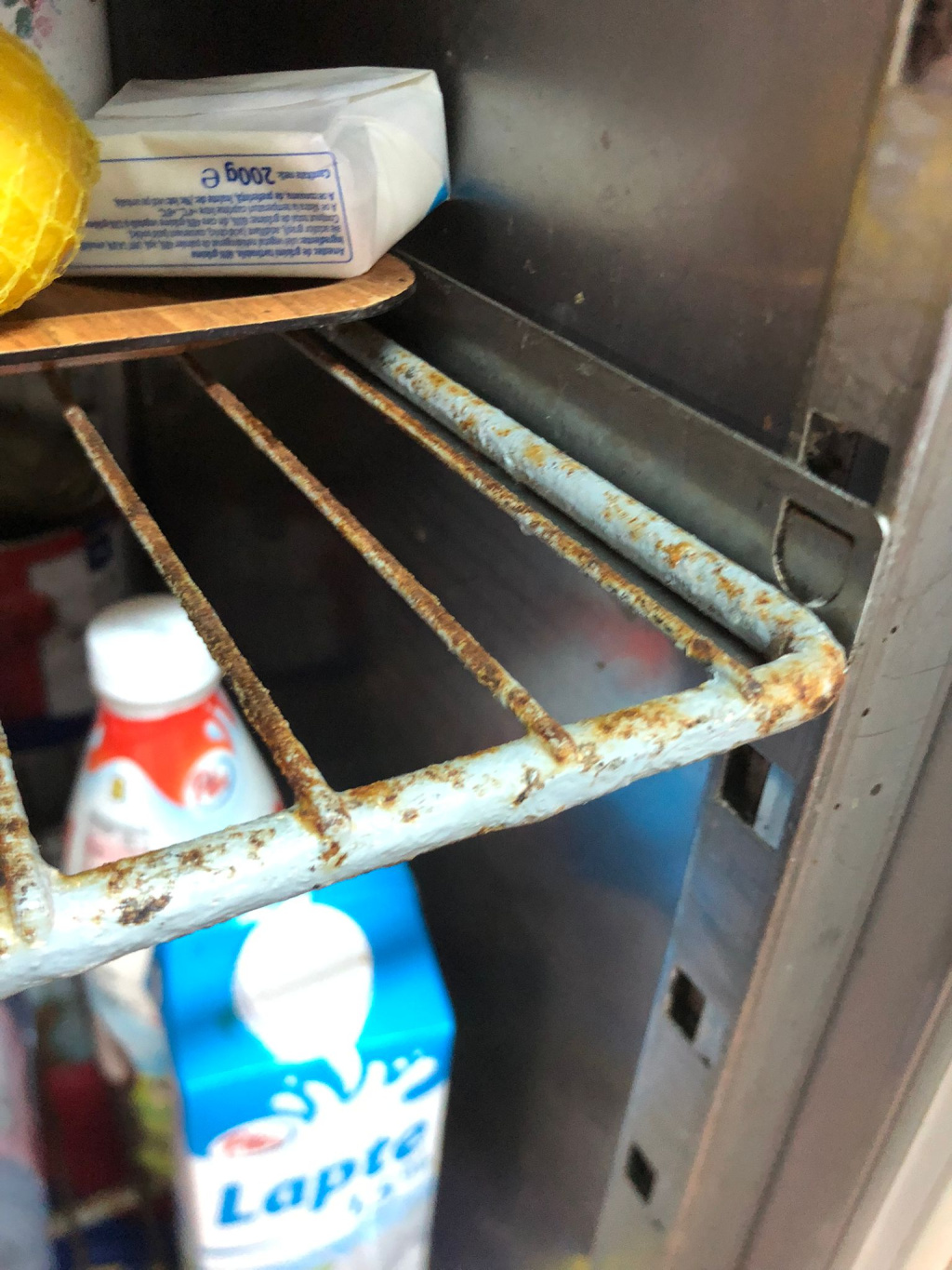 – Folosirea unor spații de depozitare și a unor spații frigorifice insalubre (cu rugină în cantitate foarte mare, cu chederele prezentând pete de mucegai), aferente produselor din carne refrigerată și preparatelor calde/reci și care nu funcționau la parametrii prevăzuți, fiind improprii depozitării produselor