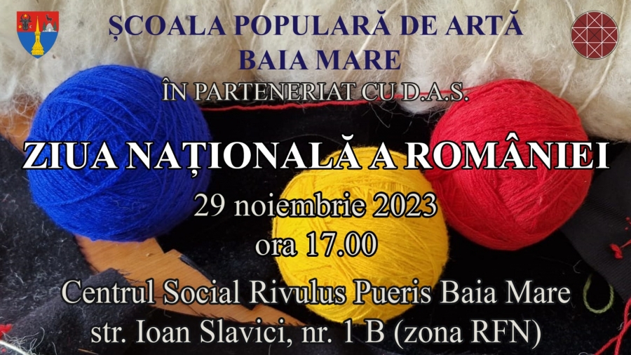 Miercuri, 29 noiembrie, de la ora 17.00, Școala Populară de Artă Baia Mare vă invită la un spectacol dedicat „Zilei Naționale a României”.