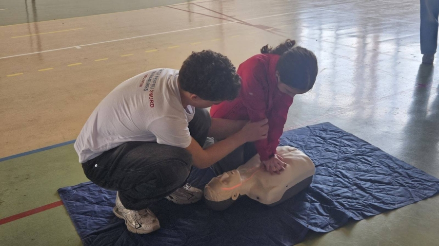 Pe lângă noțiunile teoretice de bază despre acordarea primului ajutor, elevii exersează tehnici de resuscitare cardio-pulmonară (RCP) pe manechin, descoperind pașii corecți de urmat în cazul unei persoane aflate în stop cardio-respirator.