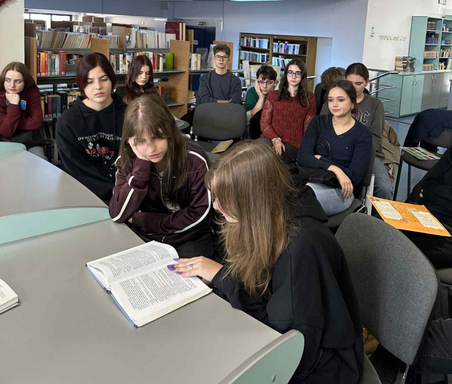 Biblioteca oferă acces la o gamă largă de cărți și materiale educaționale în limba germană, care au fost puse la dispoziția vizitatorilor de către bibliotecara Lăcrimioara Grosoș, îndemnându-i să exploreze opera „Momo” și să reflecteze asupra timpului și valorii sale, respectiv să caute și alte lucrări din literatura germană.