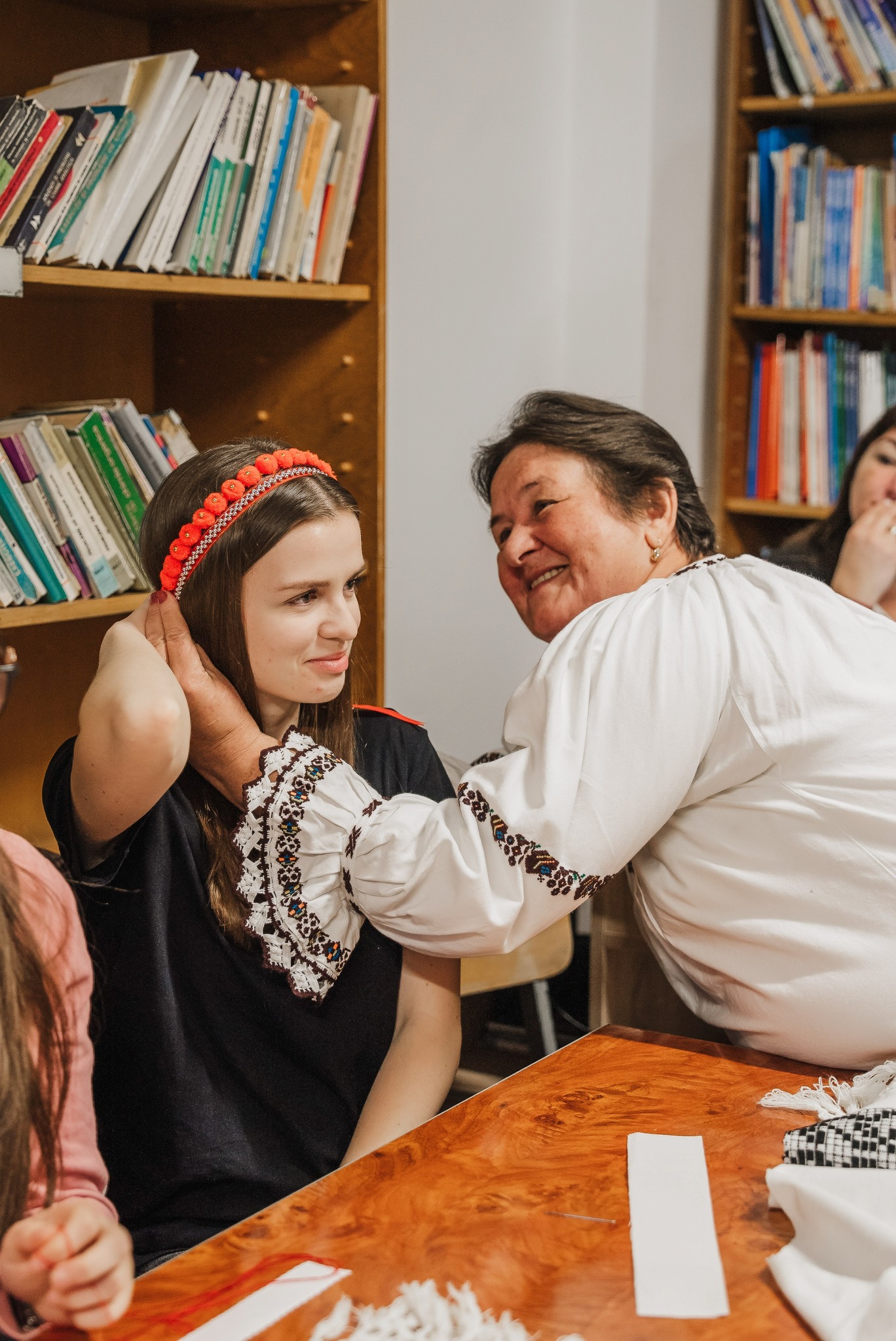 „Am fost găzduiți cu multă căldură de doamna bibliotecară Anamaria Bonța, într-un spațiu care a devenit pentru câteva ore un mic atelier de meșteșuguri.