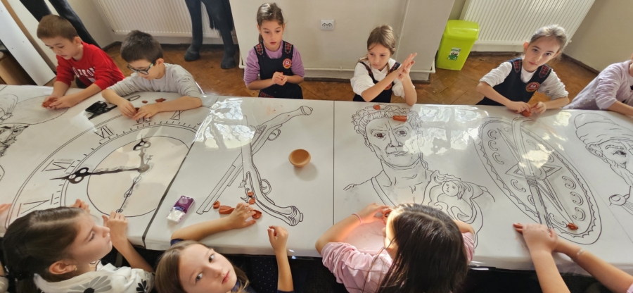 Aceasta le-a povestit elevilor despre vasul de lut din trecut, despre cum este descoperit de către arheologi, precum și unde, cum și în ce condiții se păstreaza acesta la muzeu. După partea teoretică a urmat și partea practică, fiecare elev realizând câte o farfurie sau o vază din lut, apoi au continuat cu un puzzle din hârtie, reprezentând tot un vas de lut, colorat, decupat și lipit cu multă răbdare și bucurie.