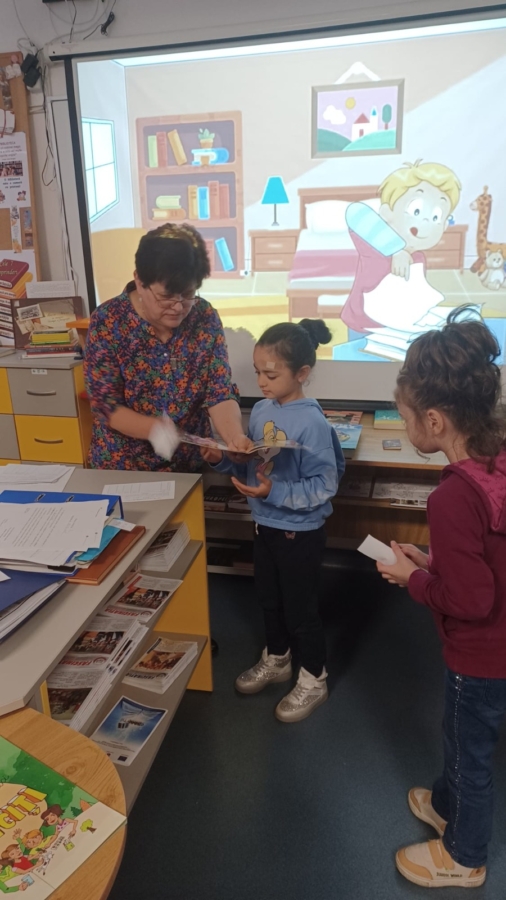 Elevii au redescoperit spațiul bibliotecii și cărțile de povești, arătându-se dornici să le cunoască și să le împrumute. Copiii au fost încântați că au intrat în rândul cititorilor, au ales câte o carte, au primit în dar un semn de carte și s-au delectat cu „Povestea Cărții de povești” de Emilia Căldăraru.