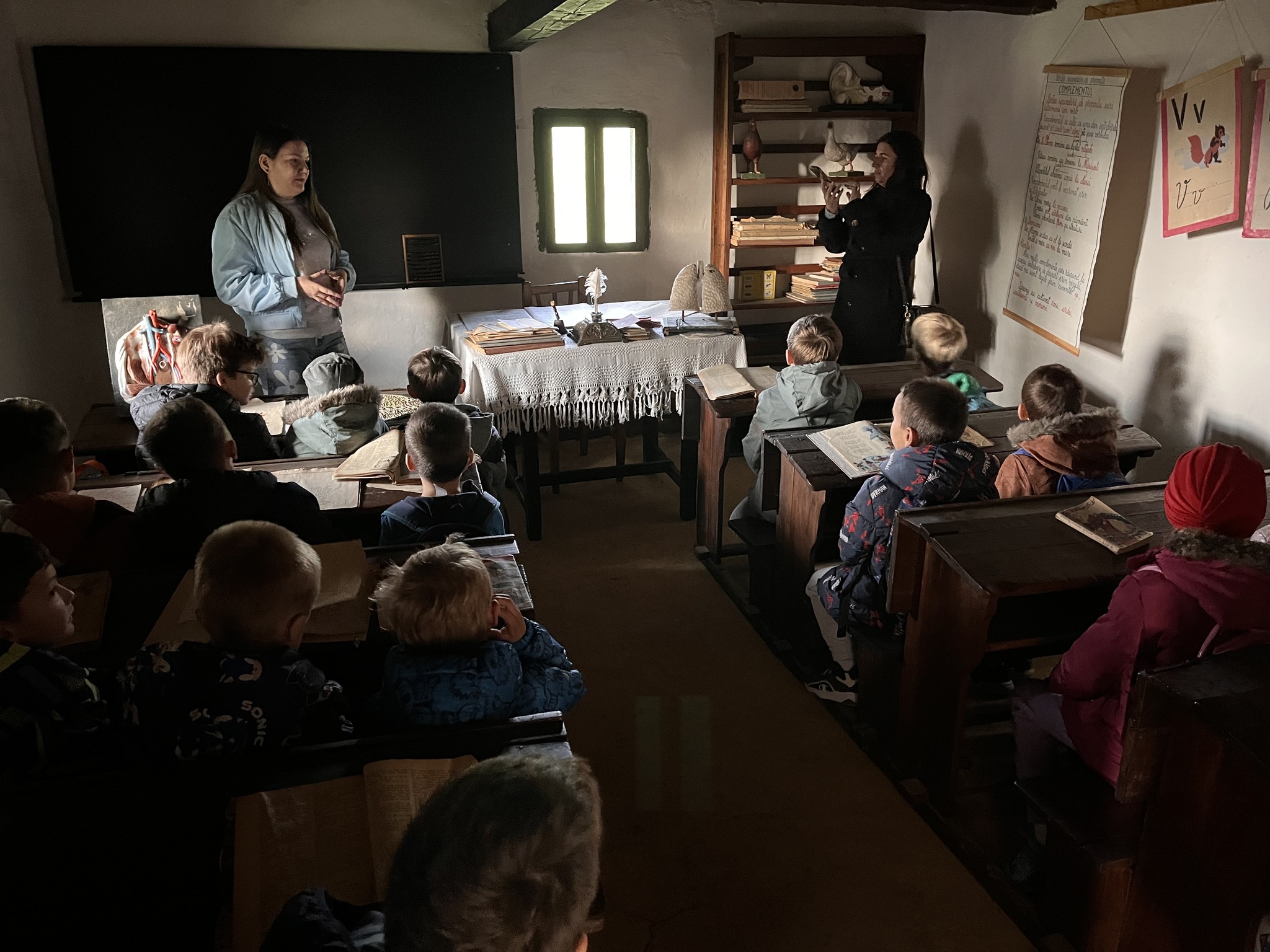 „În cadrul atelierului În băncile școlii de odinioară – vizită la școala din sat, i-am întâmpinat cu multă bucurie pe micuții clasei I B, ai Liceului Tehnologic „Traian Vuia” din orașul Tăuții Măgherăuș, prof. înv. primar Alina Șanta.